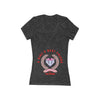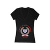 This slim-fit deep V-neck tee brings a playful, confident energy to casual wardrobes. Lightweight and soft, it drapes close to the body for a flattering silhouette that layers or stands alone. The front graphic—cheerful pastel crest with diamond and crown motifs—reads like a gentle anthem for someone who values friendship, fun, and subtle sparkle. Wear it on relaxed afternoons with jeans, tucked into a skirt for a bright brunch look, or under a denim jacket when evenings cool down. The narrow cut and delicate neckline make it feel feminine and a little rebellious at once.